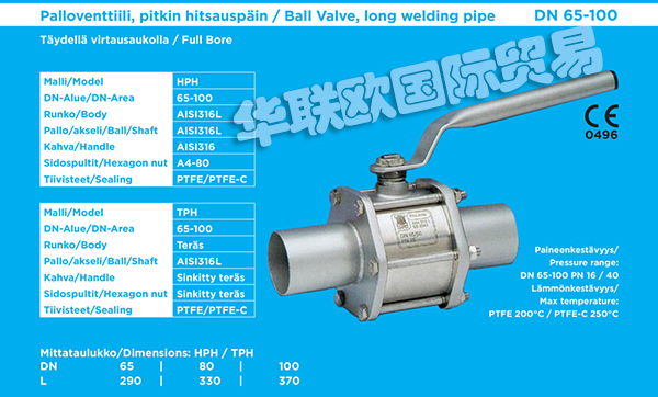 MAPER OY生產(chǎn)用于工業(yè)應(yīng)用的高品質(zhì)三段式球閥。MAPER閥門適用于需要高流量和緊密關(guān)閉的應(yīng)用場(chǎng)合。MAPER閥門是需要最高可靠性,功能性和可互換性的應(yīng)用的理想選擇。MAPER閥門廣泛應(yīng)用于造紙,食品,釀造,能源等領(lǐng)域。MAPER閥門主要材質(zhì)有不銹鋼,碳鋼,鋁合金等。