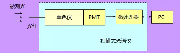 機(jī)械掃描式光譜儀通常使用光電倍增管(PMT)作為光電探測(cè)器,PMT是一種對(duì)紫外光、可見(jiàn)光和近紅外光極其敏感的特殊電子管,它能將微弱光信號(hào)通過(guò)光電效應(yīng)轉(zhuǎn)變成電信號(hào)輸出,使光信號(hào)能夠被測(cè)量。