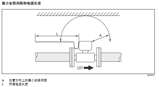為了便于流量計的日常維護操作,請注意下列安裝尺寸要求( 參考下圖):